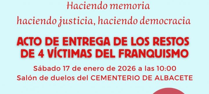 La ciudad de Albacete llevó a cabo el pasado 17 de enero la entrega de los restos de cuatro víctimas del Franquismo a sus familias, tras culminar la primera exhumación realizada con criterios científicos en la capital. El acto tuvo lugar en el tanatorio municipal y supuso un paso relevante en el proceso de recuperación de la memoria democrática en la ciudad.