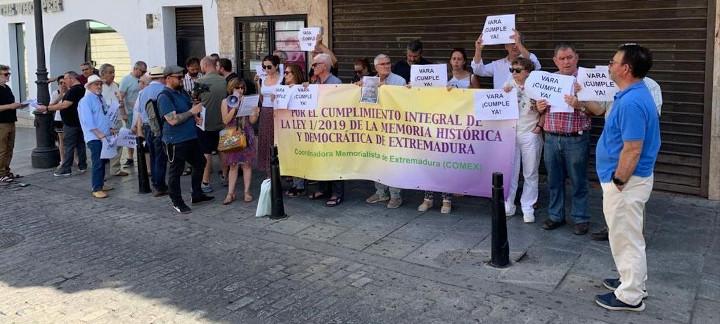 Despúes de tres años de la aprobación de la Ley de Memoria Histórica y Democrática de Extremadura, el 20 de diciembre de 2018, aún no se han producido avances significativos a pesar de que esta Ley contemplaba plazos "muy concretos" para la puesta en marcha de varias disposiciones y que se han visto "claramente incumplidos". Así lo han señalado los miembros de la Coordinadora Memorialista de Extremadura (Comex) que se han concentrado el pasado sábado, 11 de junio, frente a la sede de la Presidencia de la Junta, en Mérida, para solicitar el cumplimiento integral de la Ley 1/2019 de la Memori