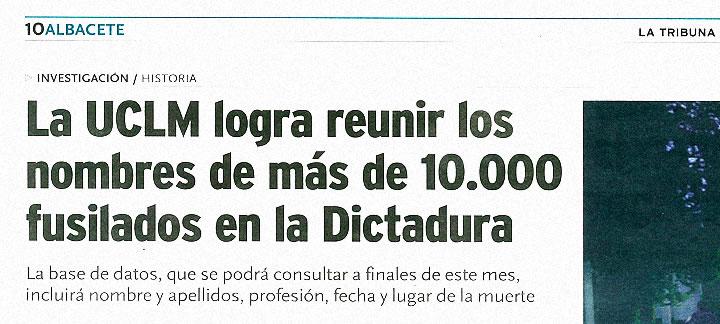 El pasado lunes 13 de octubre de 2015, La Tribuna de Albacete publicó un reportaje sobre el proyecto de víctimas de la dictadura en Castilla-La Mancha.